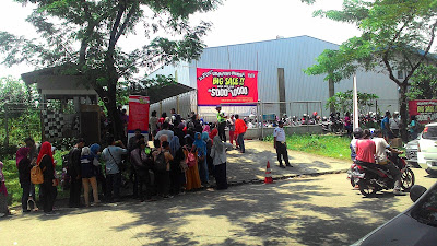 Ingat sekali lagi big sale diadakan di Gudang bukan di toko buku. Di gudang gak ada ac sementara orang berjubel. Panas pastinya.