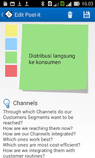 Channels, Value Propositions, Key Activities, Key Resource. untuk memahami konsep Business Model Canvas dapat merujuk ke tulisan Konsep Business Model Canvas dari buku Business Model Generation