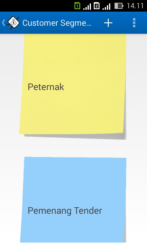 Business Model Canvas terdiri dari sembilan komponen. Untuk mengubahnya tinggal klik salah satu blok bangunan. Maka akan muncul halaman seperti kertas Post it.