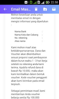 mengisi data untuk refund. Selain itu saya juga dapat voucher permohonan