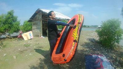 Di aliran sungai yang bermuara ke laut inilah saya mencoba perahu perahu karet intex Explorer pro 200 yang saya beli bulan puasa kemarin. Ini adalah untuk pertama kalinya saya mencoba perahu tersebut di area yang lebih luas.
