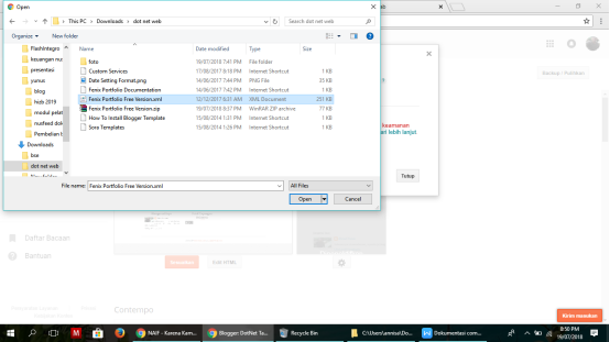 Langkah ke lima adalah mengupload tamplete. Jika sudah diekstrak, maka kita tinggal upload ke blogspot yang sudah kita buat. Tingal pilih theme.
