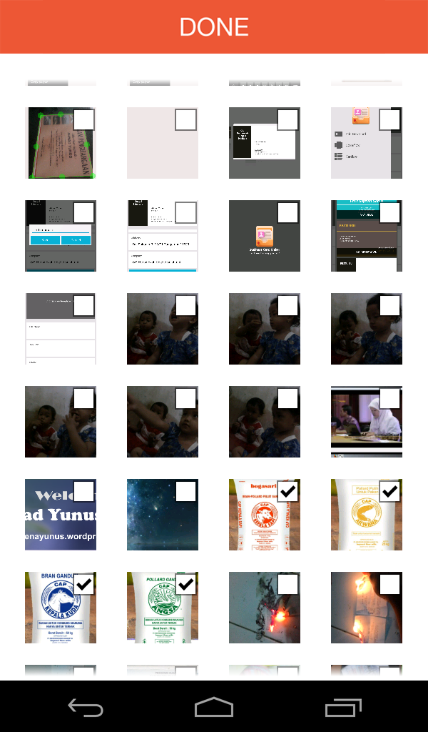 Pilih gambar yang diinginkan dengan cara mencentang gambar yang ingin dibuat animasinya. jika sudah klik Done di bagian atas, maka foto yang akan dibuat Animasi akan muncul.