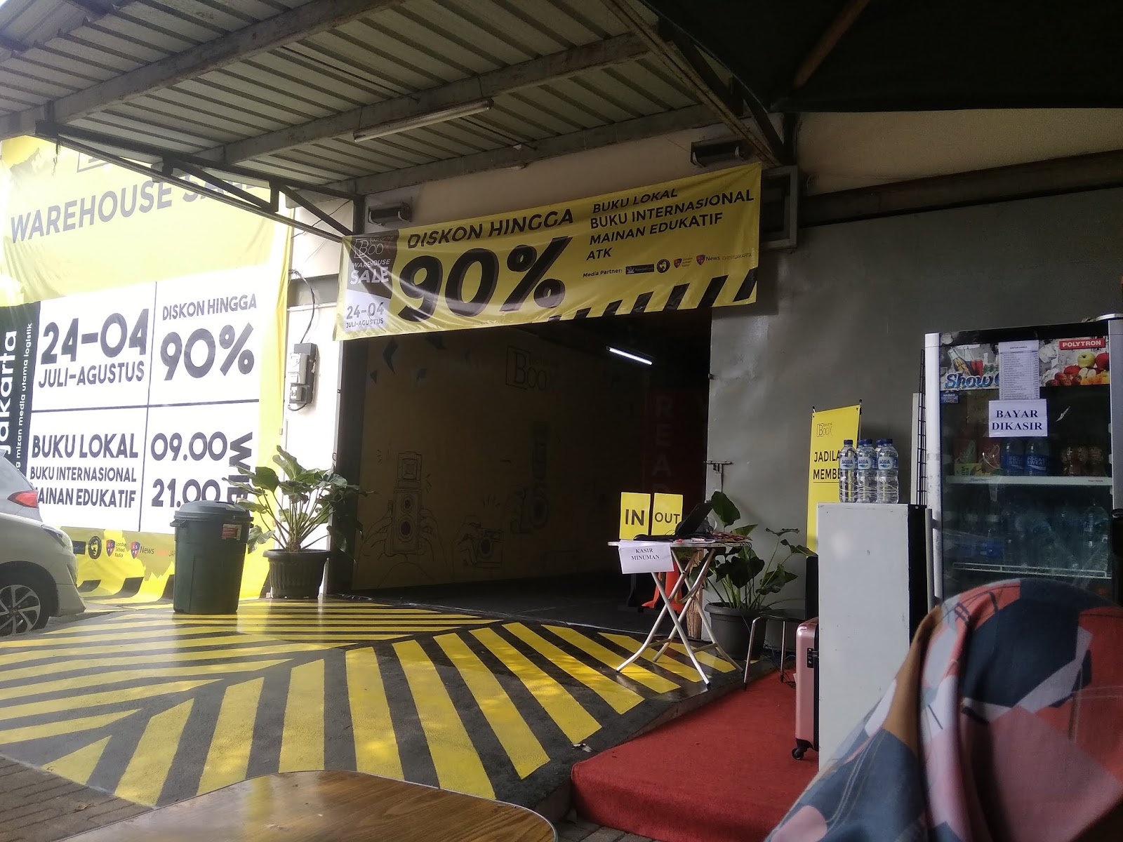 Lokasi gudang tempat cuci gudang diadakan. Ada kasir dan tempat penitipan tas. Fasilitas disediakan gratis
