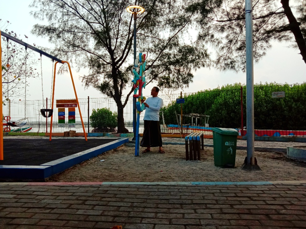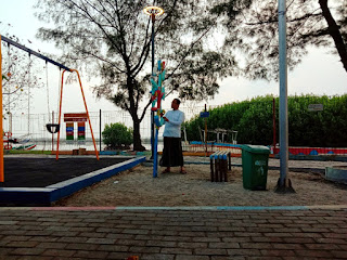 Setelah subuh saya jalan-jalan pagi ke pantai timur pulau Panggang, tidak jauh dari kantor Kelurahan Pulau Panggang. Ada pantai berpasir Putih yang ada beberapa Spot foto yang instagramable. Cekrek dulu lah sebentar sambil menikmati udara segar dan pemandangan yang memanjakan mata.