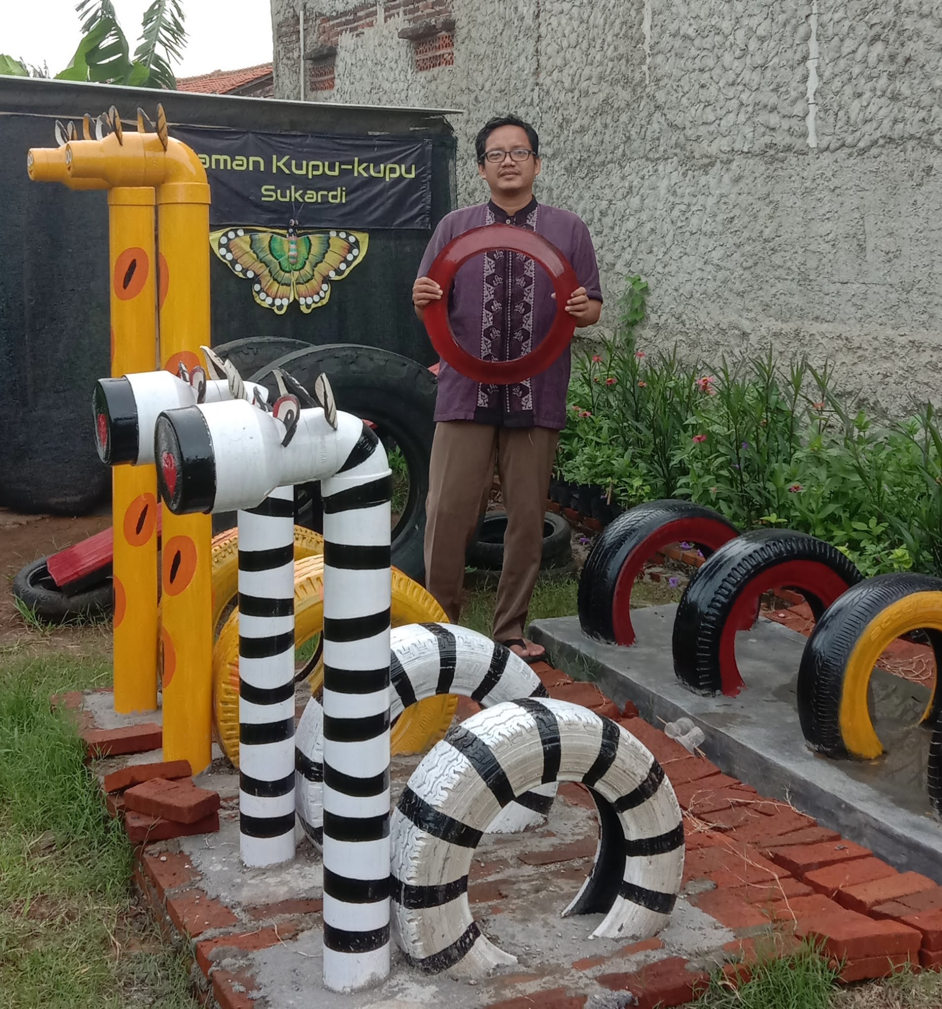 Syarat utama untuk membuat playground adalah lahan, saya memanfaatkan ruang lapang di Taman Kupu-kupu Sukardi yang berlokasi di Desa Gintung Kecamatan Sukadiri Kabupaten Tangerang. Playground yang dikembangkan di taman kupu-kupu Sukardi mengambil tema hewan. Selaras dengan konsep konservasi yang kami gaungkan, sebagai bentuk kepedulian atas lingkungan, maka saya memilih menggunakan material dari bahan bekas.